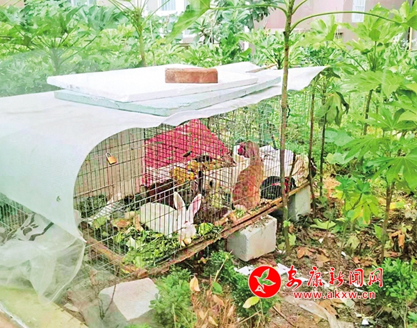 6月23日,安康中心城区城投西津城小区多处公共绿化带被占用栽种蔬菜和圈养兔子,给小区卫生环境和居民生活带来了不良影响。(记者 罗伟 摄)