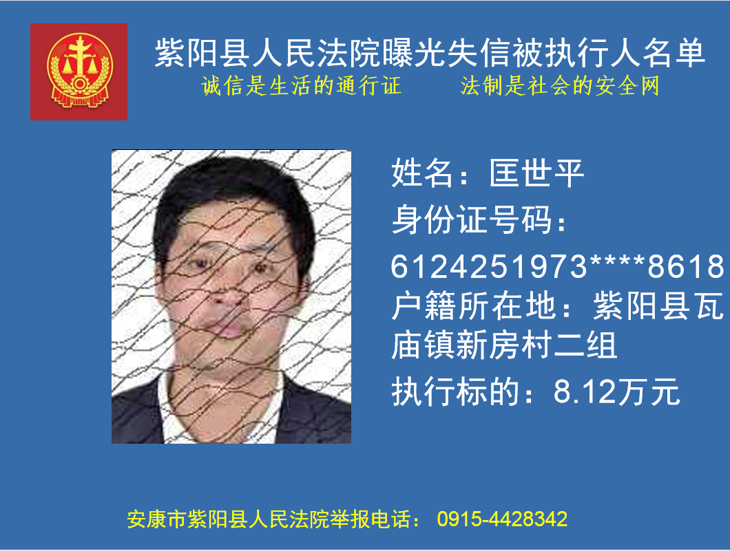 曝光失信 | 紫阳县人民法院:关于敦促匡世平履行法定义务的公告