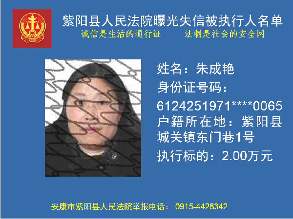 曝光失信 | 紫阳县人民法院:关于敦促朱成艳履行法定义务的公告