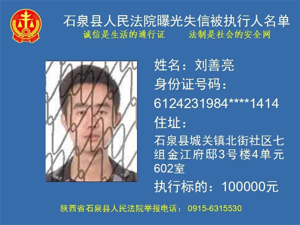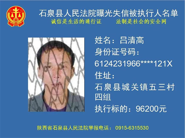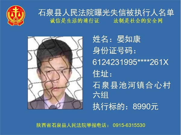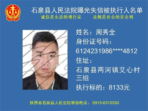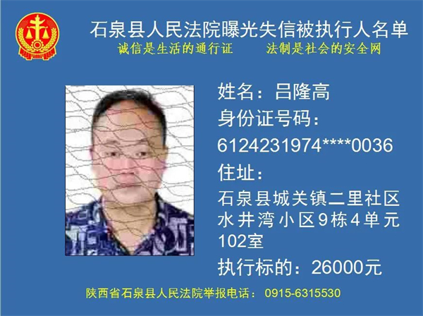 曝光失信 | 石泉县人民法院曝光失信被执行人名单!(2022年第五期)