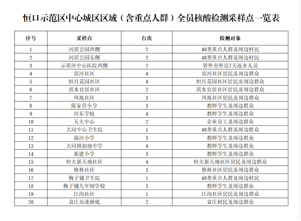 关于开展恒口示范区中心城区区域全员及重点人群核酸检测的通告
