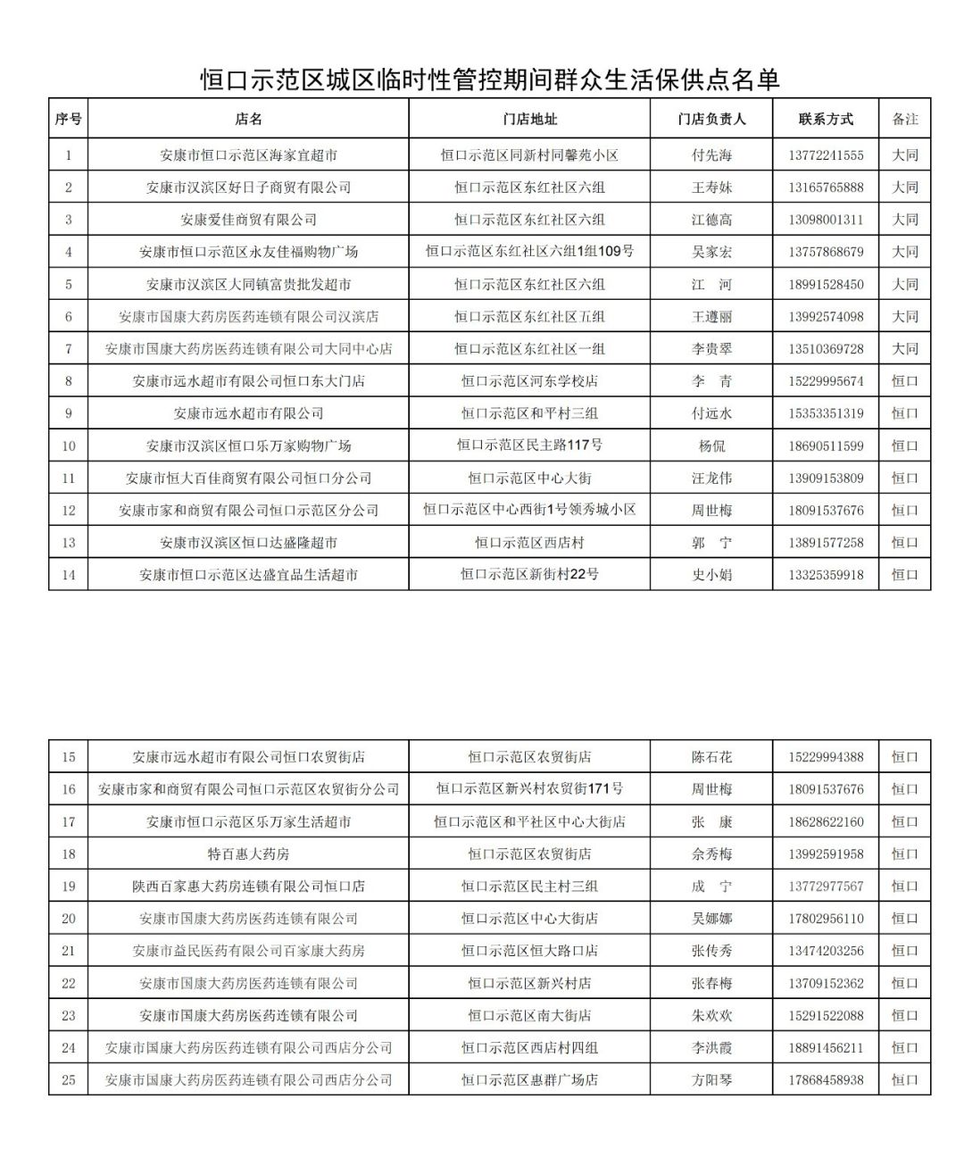 附件:恒口示范区临时性管控期间群众生活保供点名单