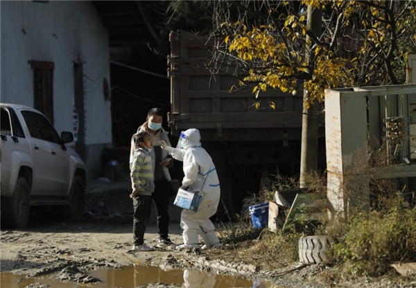 11月25日中午,忙完第一轮核酸采集,再接到流调通知单后,王康又立马带着他的“小伙伴”前往三里社区为居家隔离人员做核酸检测,沟深路滑,因前几日阴雨天气路面湿滑,在上一处陡坡时,车轮瞬间开始侧滑,但是时间紧迫只能一试再试,大概试了20余次,在村上压路车的帮助下,又试了两次车子终于缓缓启动。喜悦之余他们就即刻赶往隔离群众家中,“我们快一点,再快一点,就能让等待的人少受一点冷”,这是“大白”们共同的心愿。