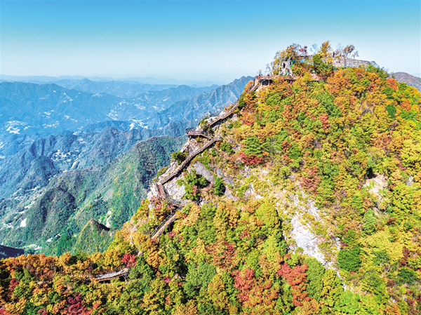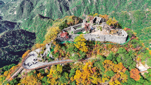 全胜寨位于我市岚皋县民主镇,是一个隐于群山、建于绝壁之上、保存完整的古山寨群落。古寨遗存的多处石砌城墙和战壕错落有致,延绵数公里,为秦巴山区所罕见。据当地史志记载,此寨始建于明末,是当地民众为躲避战乱而建。因山寨抵御多次外来侵扰,屡获全胜,故名“全胜寨”。这里平均海拔1300至1500米,是陕西省第七批文物保护单位,也是目前我省保存较为完好、历史战绩辉煌的寨堡,同时也是重要的革命历史旧址。对于研究明、清、民国时期岚皋历史文化和寨堡建筑具有重要价值。(袁法 摄)