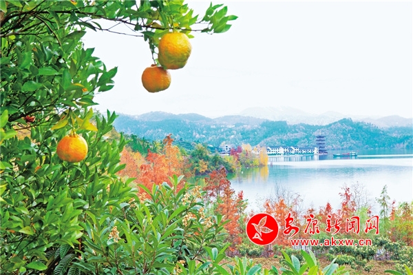 俯瞰像一只美丽孔雀的翠屏岛,卓尔鹤立,盈盈生姿,烟波妖娆,气象万千,以“禅意灵透,人间圣境”寓意,别有一种风韵。当万物凋零的严冬,数千株梅花凌寒盛放,暗香浮动,恣意妄然。江边环岛绿荫小道,几株火罐柿,猩红耀眼,就像玉树上挂满的红灯笼,点燃了年的颜色和春的眺望。有一座玉清桥上的两个姊妹亭,一个名曰“瞻云”,另一个名曰“洗月”,巍然对立,斗拱飞檐,金碧辉煌,站在浮桥看江波,浩瀚缥缈,连接云天。有摄影爱好者拍了一段快艇游弋的视频,犹如碧波中的水凤凰,翩翩起舞,震撼心野,曹植《洛神赋》的“翩若惊鸿,婉若游龙,荣曜秋菊,华茂春松”用来形容,最恰当不过了。