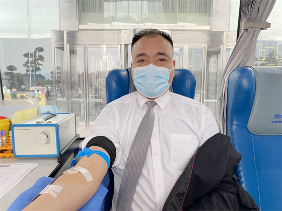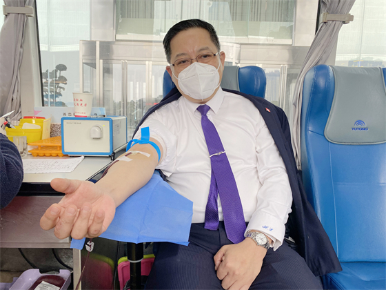 瑞斯丽酒店总经理梁志斌再次带头献血,他说,作为企业的总经理,组织参与无偿献血活动是企业献爱心的一种体现,希望能够把这种善良和爱传递出来,也呼吁大家献出爱心,帮助更多有需要的人,将无偿献血的公益活动做到最好。