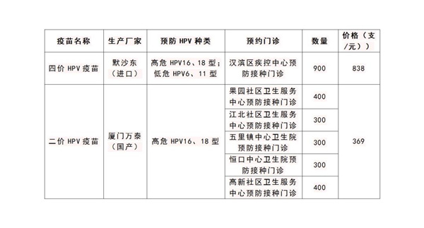 (4)本次仅有二价、四价HPV疫苗,数量有限,生产企业后续将会逐批供应,请耐心等待;可关注【汉滨疾控】微信公众号,及时了解预约消息。