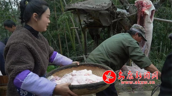 就这样,抖音号“菲儿姑娘”出发啦。她平时负责策划及出镜。在2023年2月9日的采访中,杨菲对华商报记者说:“我们的视频一般是从食材的选取开始拍,比如炒腊肠,每个产品都是经过精挑细选,也都是选取当地农户自己养殖的猪,整个制作过程也都会拍进视频里,就会不断有粉丝朋友询问购买腊肠、腊肉。”2022年11月份,仅用半个月时间该账号帮村民卖完了5000余斤猪肉,还有不少客户已经在预定明年的腊肉,这让附近的农户信心倍增。