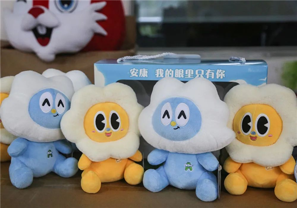 “把安康带回家”——安安、康康两个萌宠,寓意安康。蓝色的萌宠代表蓝天白云,代表我们优美的自然环境,黄色向阳花,代表阳光、温暖。两个萌宠的眼睛,分别是“A、K”寓意,“安康,我的眼里只有你”!