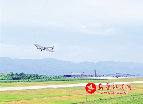 5月1日上午,一架客机离开安康富强机场。如今立体的交通网络大大方便了安康人出行,同时也方便游客来安康旅游观光。陈德模 摄