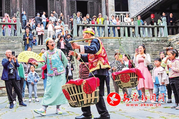 5月1日,旬阳市蜀河古镇展示传统民俗文化引来游人喝彩。李春江 摄