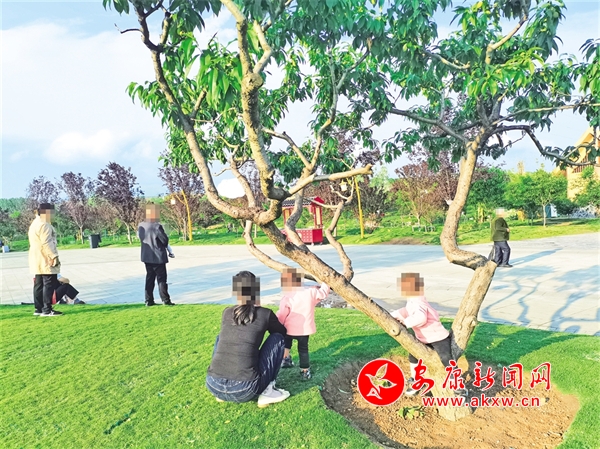 “五一”期间,在高新区桃花源景区,个别游客带领小孩未按照相关规定文明规范游玩,小孩攀爬树木,很是危险。(陈荣斌 摄)