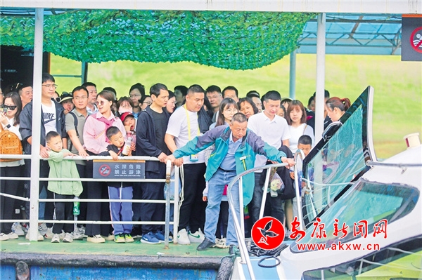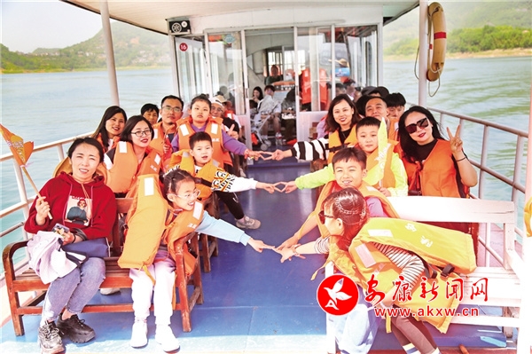 游客抵达瀛湖景区,在工作人员的疏导下,有序登船,穿好救生衣后,向着碧波涟漪、白云万里进发,这样游湖,就是一幅绝美的画卷。