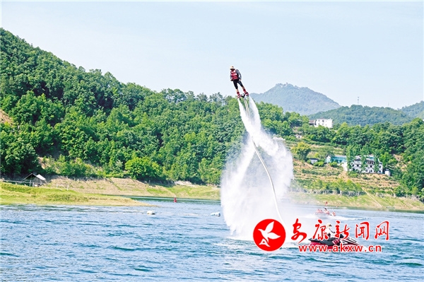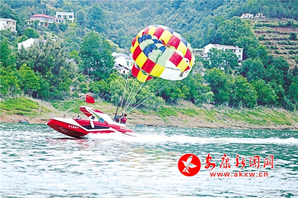 休闲胜地翠屏岛,最大的亮点是玉清桥的彩虹瀑布,游客从桥下经过,感受“瀛湖之水天上来”的曼妙,这也是瀛湖为游客送上的初夏第一丝清凉。桥头幸福的天梯、鸟巢,成为排队拍照的绝佳点位。运动场上,滚铁环、射箭、投壶、打篮球,让游客流连忘返。儿童乐园旁,微型爆米花机勾起了孩子们参与的兴趣,彩绘激发了孩子们的绘画热情。瀛湖水上嘉年华,精彩刺激的水上项目带给游客酣畅的体验,游客纷纷直呼“过瘾”!