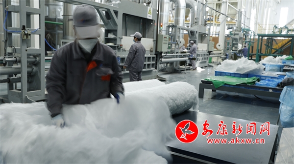 化石为“宝”,技术创新有门路。在恒口示范区工业产业园区的恒康欣石玻璃纤维有限公司1号生产线厂房,我们就见证了玻璃纤维“化石为宝”的过程。据了解,利用这种玻璃纤维棉制成的产品绝缘性好、耐热性强、抗腐蚀性好、机械强度高、防潮性好,产品主要以订单方式销往南京、湖南、浙江、山西等地,自2月9日投产运营以来,日生产玻璃纤维棉30吨左右、产值达36万余元。