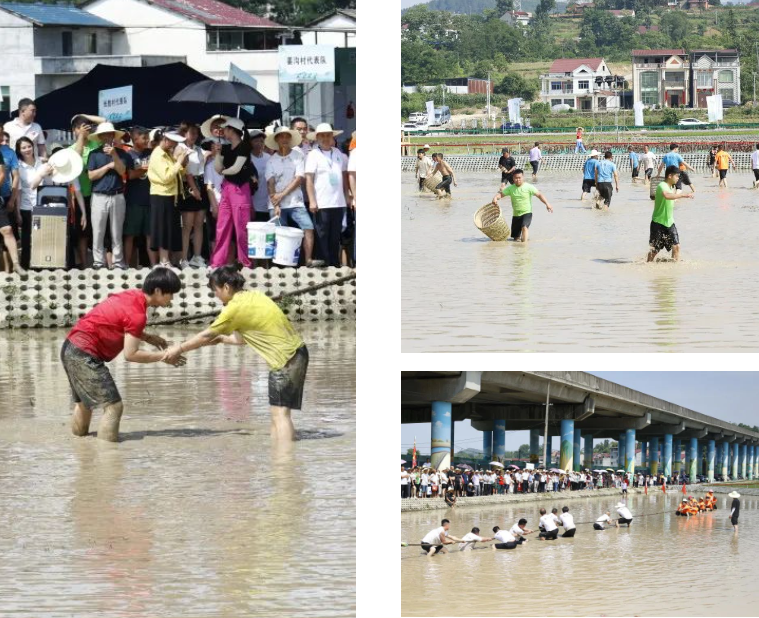 当日,现场还举办了稻田拔河、稻田摸鱼、稻田摔跤等娱乐活动和田园古筝表演、70后主题怀旧音乐会、火龙表演等演出活动,吸引众多游客朋友前来打卡。6月11日,灵动恒口欢乐跑、亲子趣味运动会、唢呐音乐表演、80后主题怀音乐会等活动精彩继续......