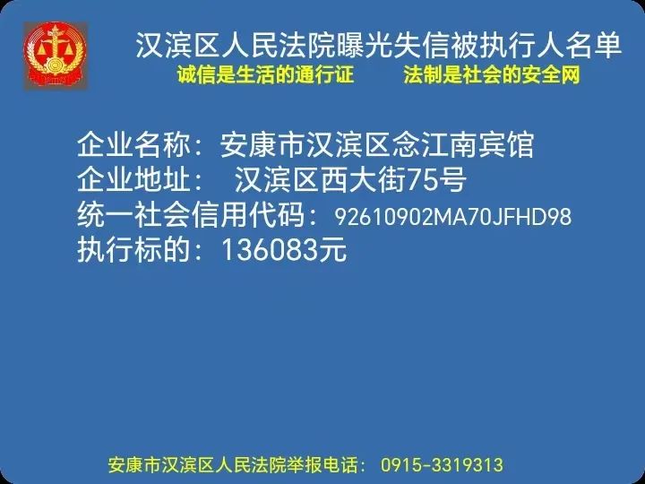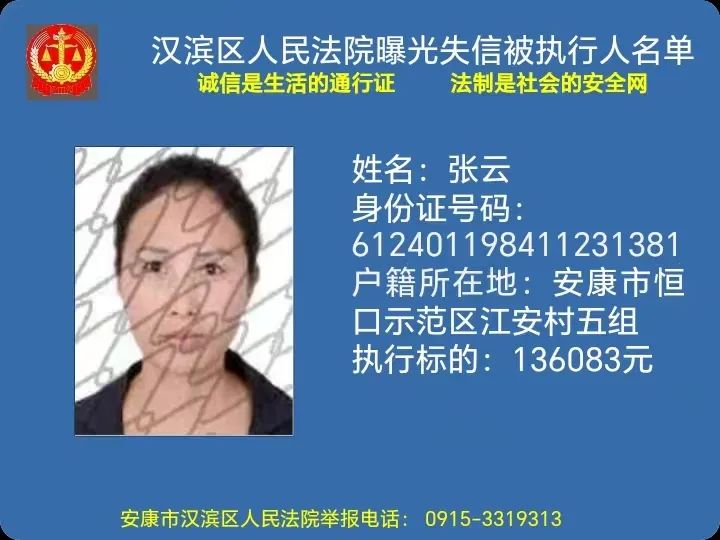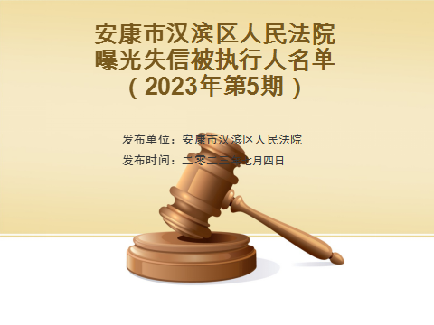 曝光失信 | 安康市汉滨区人民法院失信被执行人曝光名单(2023年第5期)