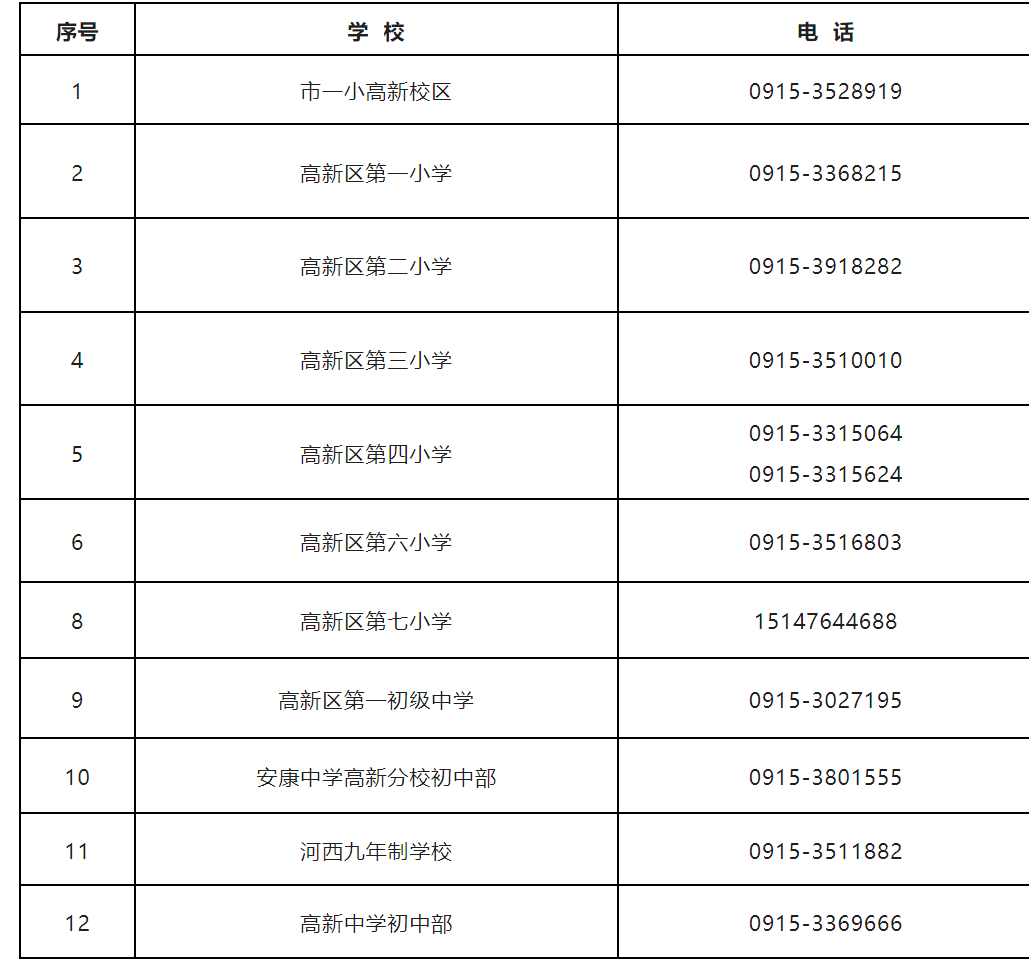 五、安康高新区2023年中小学校招生入学咨询电话