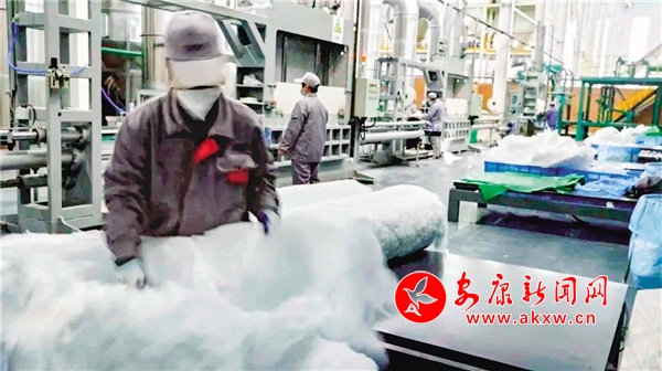在恒口示范区工业产业园区的恒康欣石玻璃纤维有限公司1号生产线厂房,我们就见证了玻璃纤维“化石为宝”的过程。轰鸣的机器喷出一层层白色的软棉花,让人感觉这是一家纺织企业,其实这是一家高科技材料公司,专干“化石为宝”“点石成金”的活。