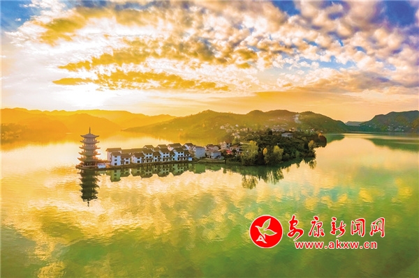 在瀛湖,冬日里的暖阳往往午后才露出羞涩的笑脸。听说清泉老码头新打造了一座古香古色的小镇,与四周的群山和这里的大湖面浑然一体,美丽壮观。11月下旬的一个下午,待云雾慢慢散开,我和纪平、世军驱车来到清泉老码头。过去,这个码头是跨汉江通往玉岚的必经之地,也是岚河与汉江的交汇处。火石岩电站大坝蓄水后,这里呈现出瀛湖最开阔的湖面,螺峰岛、翠屏岛、玉兴岛、五龙山等形成了四面环水的岛屿,清泉、玉岚、桥兴、关垭子、红岩堡、南溪沟、任家湾等地纵横交错,形成了诸多形态各异的半岛。水位升至最高时,“腰带”消失,山与水浑然一体,与绵延的山势温柔相依。此时山头已是草木萧疏,只剩下光秃秃的树枝了,而瀛湖两岸却秋意正浓,山坡上的红黄绿像是被打碎了的调色盘,洋洋洒洒,带着几分温润嵌入山坡、映入湖中,在蓝天白云的映衬下,宛如一个童话世界。忽然,一艘游船驶过,五彩斑斓的倒影顷刻被搅拌成彩色绸缎,任其在湖中翻滚飘荡。夕阳划过山头的那一刻,红霞漫天,湖面被染成橘色之后,一片寂静。只有此时,山之沉稳端庄和水之妩媚温柔交融一体,呈现出无与伦比的美。我想,这不正是我想要的那幅极具诗情画意的场景吗?有感: