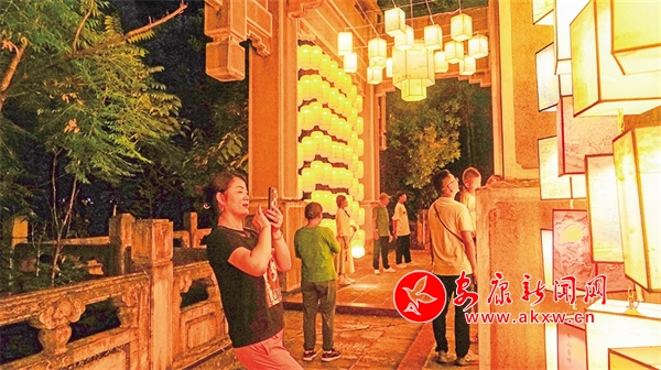 在安澜楼南侧,刻有金州八景的灯笼高高悬挂,穿上汉服,提着灯笼,走向澜上灯会,感受花灯如昼。移步廊道,徜徉安澜夜市,感受焕然一新的公园氛围、琳琅满目的文创精品和目不暇接的特色非遗。