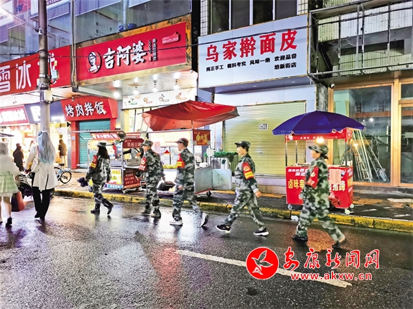 10月1日,志愿服务队在中心城区培新街开展夜间巡逻。潘润生 摄