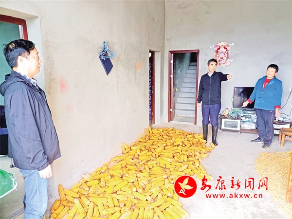 国庆长假期间降雨不断,汉滨区税务局驻村帮扶队工作人员坚持节假日值班值守。图为10月4日,该局驻村工作队员深入农户了解村民秋粮作物晾晒情况。陈荣斌 摄
