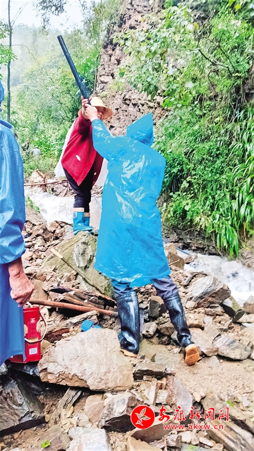 10月5日,紫阳县高桥镇双龙村村“两委”干部和村级水管员坚守岗位,排查抢修饮水管道。胡波 田自国 摄