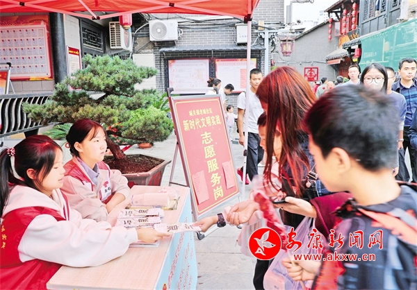 中秋国庆节假期,石泉县在景区景点以及人流、车流集中地安排志愿服务点,积极组织文明实践志愿者,为游客提供旅游咨询、文明引导等服务。董长松 摄