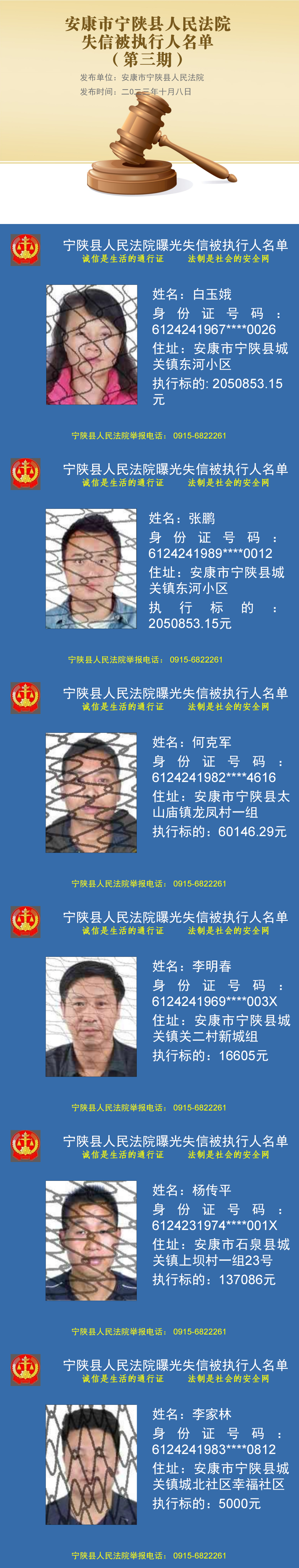 曝光失信 | 宁陕法院2023年第三期失信被执行人名单公布