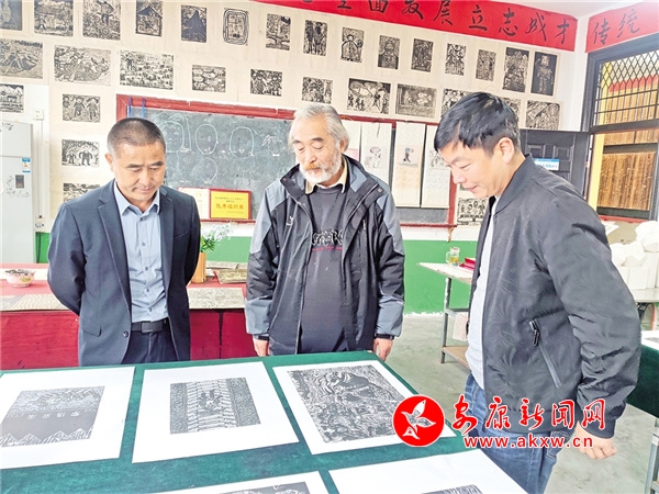 指导老师对瀛湖小学学生版画进行点评。 宋安平 摄