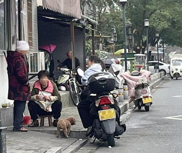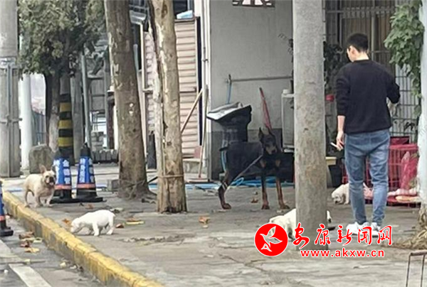 11月9日,在城区东内环路住户门前,有市民带着狗未系绳和邻居聊天,狗在门前随意跑动。(图文/马婷)