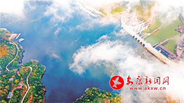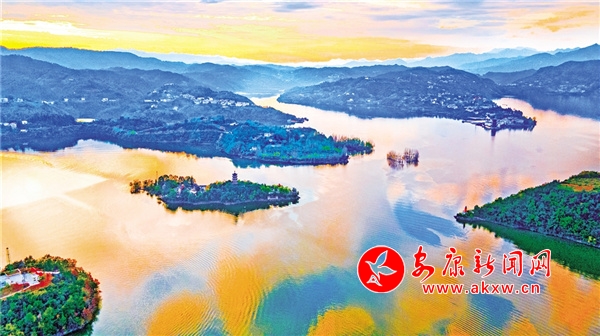 安康位于汉江中上游,秦岭以南,巴山以北,汉江穿境而过。近日的安康瀛湖,色彩斑斓、美丽如画,特别是在夕阳西下和旭日初升的时候,格外美丽,如一幅巨大的山水画镶嵌在群山怀抱之中,引人入胜。 赵华斌 摄