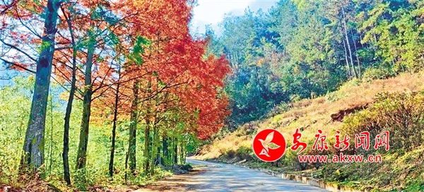 车子沿着山路继续往上,途中时不时掠过一排排水杉,水杉的颜色有绿有黄、有深有浅,高大挺拔、直入云端。偶尔有几棵同类型品种夹杂其中,已全然呈现出上下一体的棕黄色。在太阳的照射下,仿佛是身披金黄铠甲的战士,坚韧有力。枝叶在微风中轻摇,沙沙地响,视听一体的感觉,不觉教人沉醉其中。