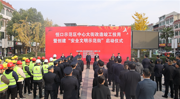 11月22日,恒口示范区隆重举行中心大街改造竣工投用暨“创建安全文明示范街”启动仪式。