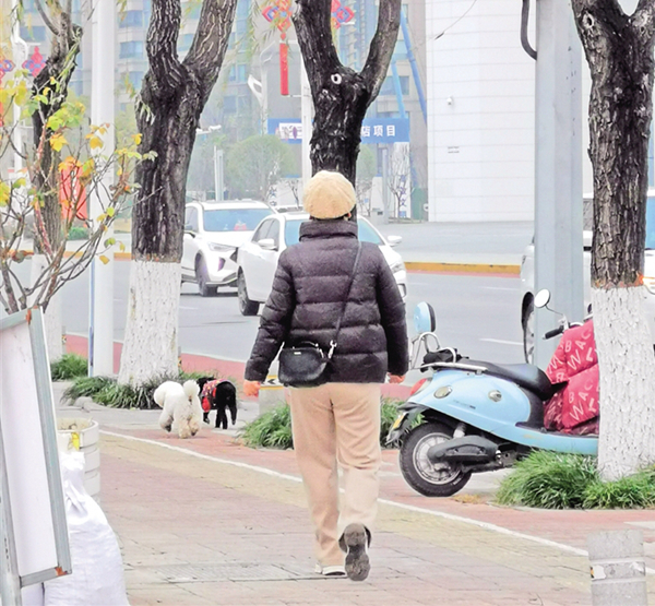 12月21日,在安康大剧院附近,有市民遛狗不牵绳。记者 潘润生 摄