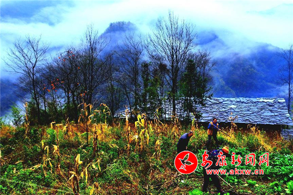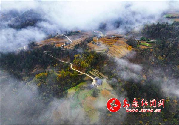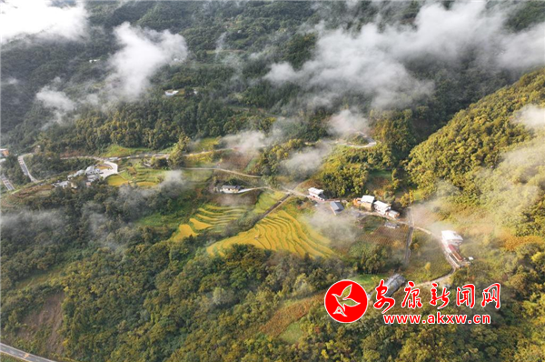 大湖溪位于镇坪县城关镇友谊村,距离县城大约半小时车程。沿207省道顺南江河而下,穿过南江湖大坝就到了谷口。一条崭新的柏油马路沿溪流伸向大山深处,茂密的森林覆盖着山峦,星星点点的农舍、民宿集群和土地,若隐若现地掩映在云雾缭绕的群山之间,许多保存完整的巴山古老传统民居石板屋,炊烟袅袅,与淡淡的晨雾相互交织,构成了一幅浑然天成的水墨画卷。放飞手中的无人机,我贪婪地捕捉这一幅幅梦幻般的景致。