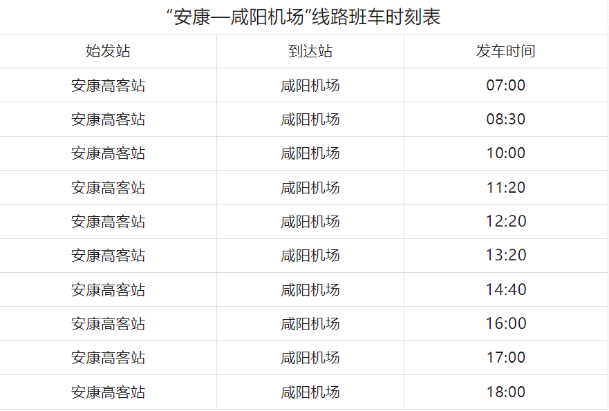 “安康—咸阳机场”客运线路发车时间调整