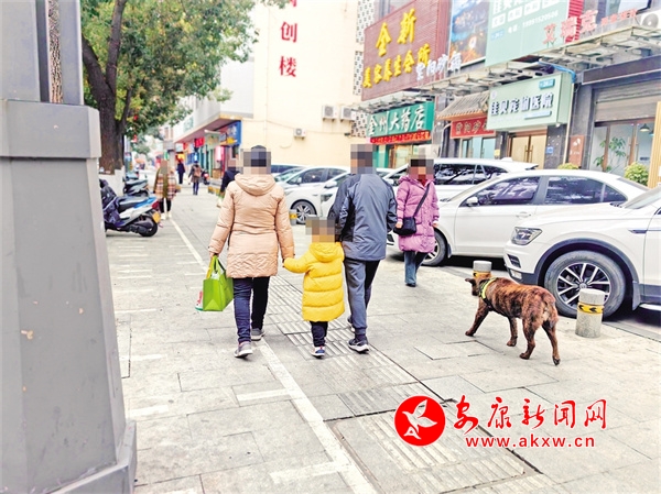 1月30日,安康城区巴山西路有市民遛狗不栓狗绳。