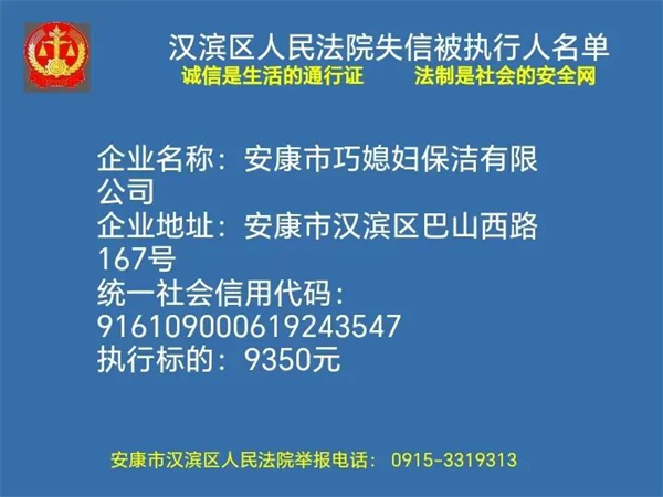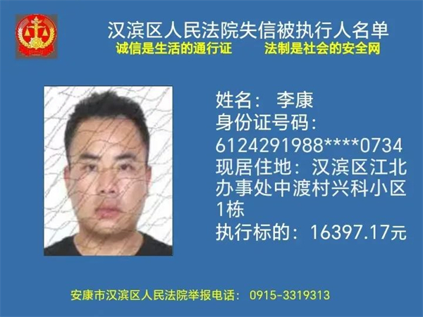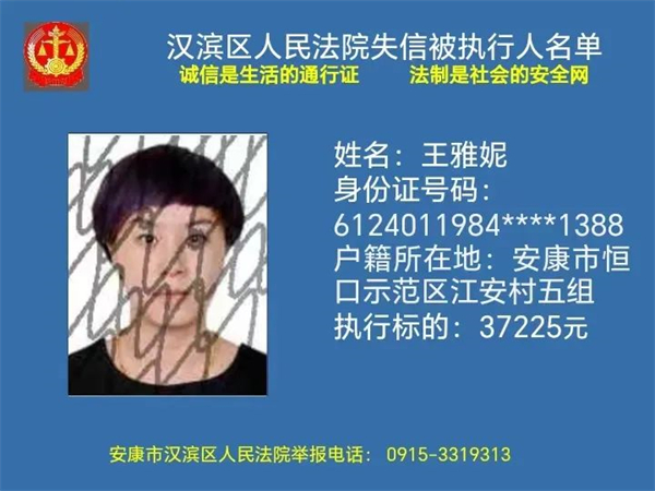 2月1日安康市汉滨区人民法院曝光新一批失信被执行人名单快看都有谁转发提醒更多人↓↓↓