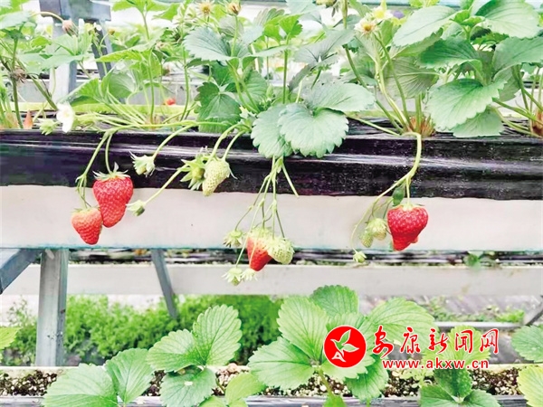 “‘高架草莓’不仅节约人力,能让大家冬天也能吃到鲜甜可口的草莓,也不用担心降温、大雪等天气影响。悬空种植还方便工人以及游客进行采摘,许多周边群众慕名而来,体验‘开心农场’。”园区技术员曹峰说。