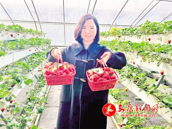 走进大棚,草莓特有的清香味扑鼻而来,新型的钢架种植平台一线排开、高低错落,一垄垄长势茂盛的草莓秧苗嫩绿清新,一颗颗饱满透红的草莓点缀于绿叶之间,几名游客正在仔细地采摘着成熟的果实。“这草莓闻起香,吃起来甜!在这采摘草莓还不用弯腰,不费劲。”游客高女士说。