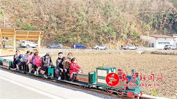 景区里,网红小火车受到游客们的欢迎,大家纷纷坐上小火车,不紧不慢地穿梭在田野中,感受大自然的惬意和美好。