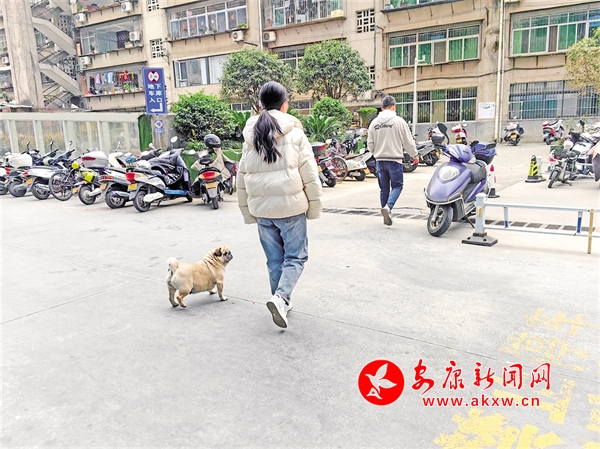 3月16日,安康中心城区某小区内有市民遛狗不牵绳。郑时根 摄