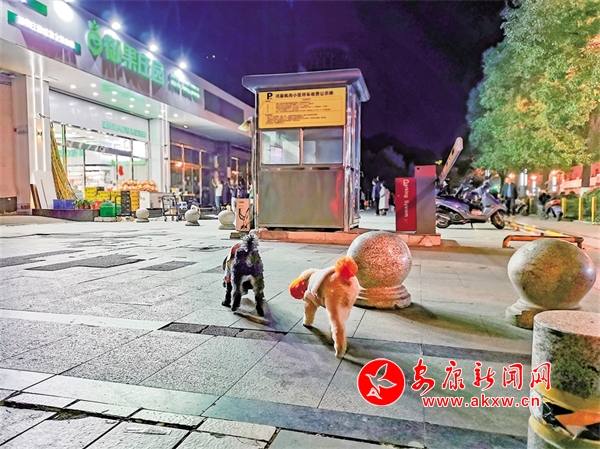 3月12日,在安康育才西路,有市民遛狗不牵绳。 记者 潘润生 摄