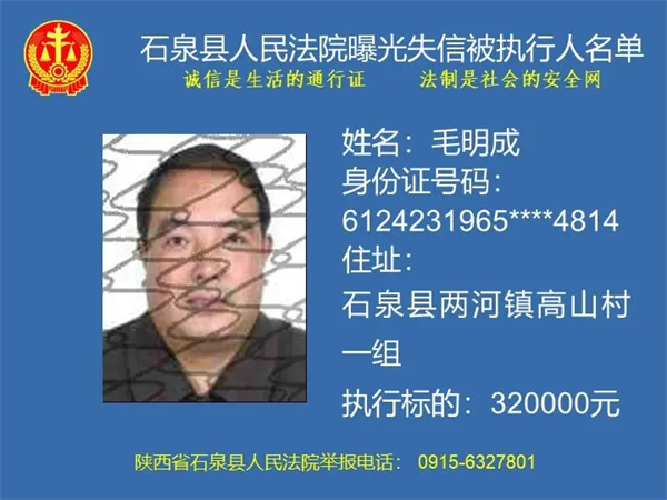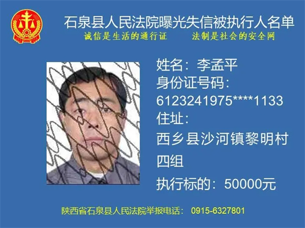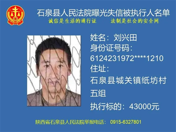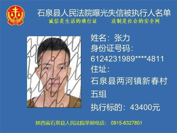 曝光失信 | 石泉县人民法院曝光失信被执行人名单(2024年第一期)