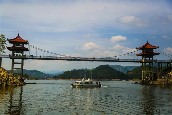 瀛湖翠屏岛玉清桥,一条取自瀛湖水的人工瀑布,让穿梭桥下的游客,彻底感受到了来自瀛湖的清凉。