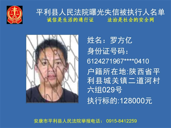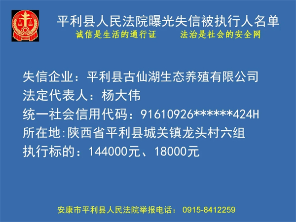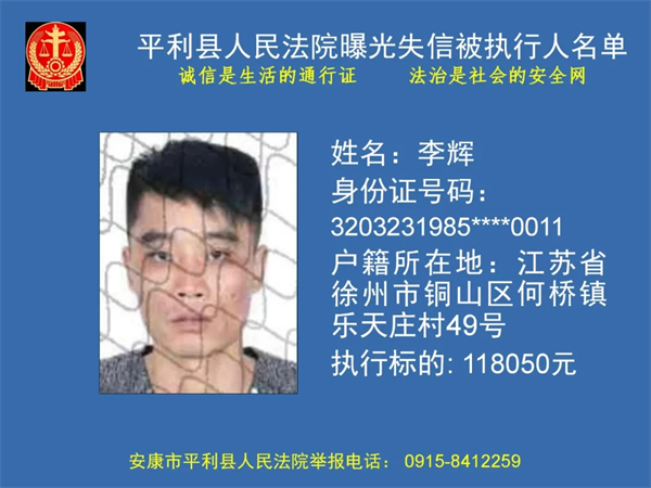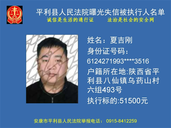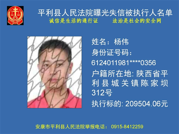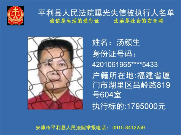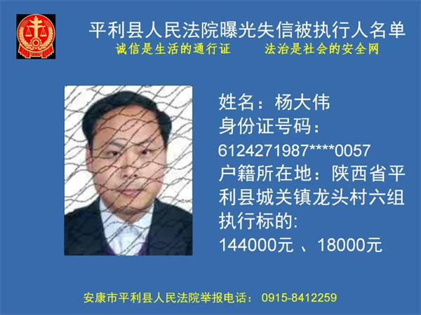 曝光失信 | 平利县人民法院曝光失信被执行人名单(2024年第一季度)