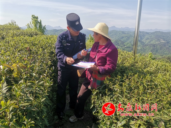 在蒋家坪村广场,民警通过陈列展板、专题宣讲、有奖问答、发放宣传彩页等方式开展宣传,着重围绕树牢和践行总体国家安全观、保守国家秘密,崇尚科学远离迷信,履行维护国家安全责任等角度阐释安全主题,增强群众的国家安全意识。通俗易懂的语言和图文并茂的讲解,吸引了大量游客和群众参与其中。同时,民警还携带反诈反邪反恐相关彩页深入到茶园,与茶农面对面的宣传,进一步扩大宣传“4.15国家安全日”覆盖面,提升群众的知晓率。
