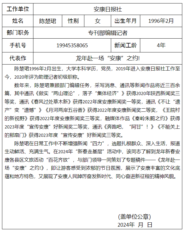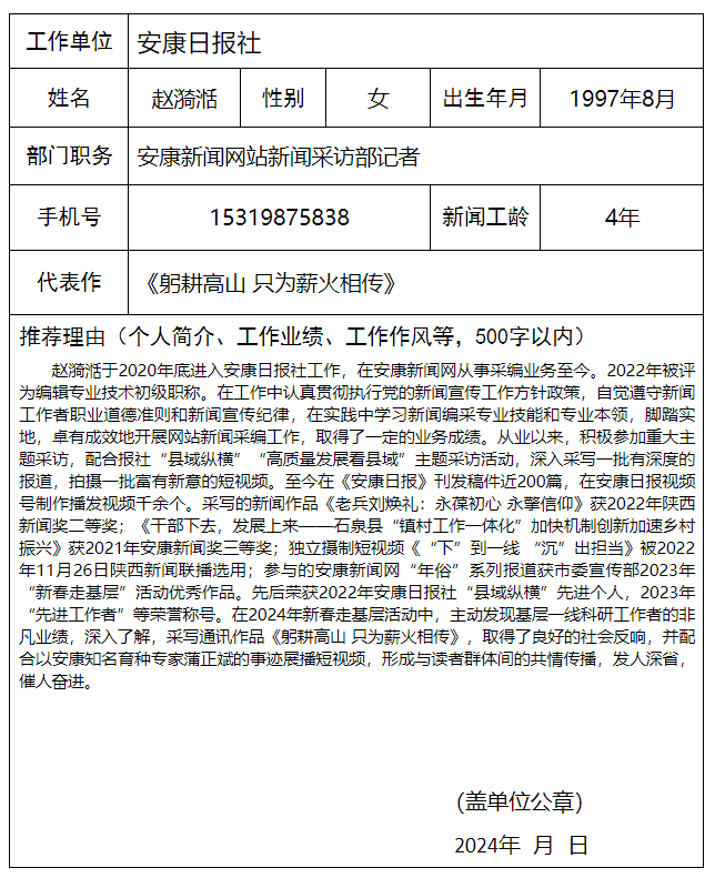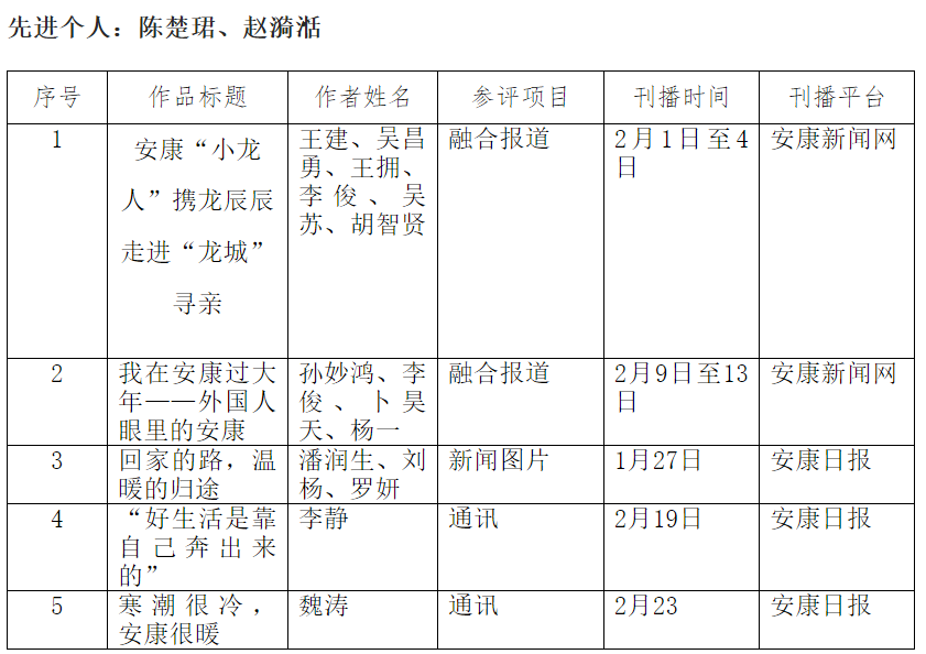 安康日报社拟参评2024年“新春走基层”先进个人及新闻作品公示